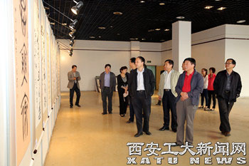 在校广大师生积极响应并热情参与,大家充分利用假期时间精心创作,截止9月20日共收到作品 200余幅。经过专家评委的评审,共确定50幅(其中教师20幅,学生30幅)作品于9月28日至10月15日在我校图书馆艺术展览中心展出。展出期间,吸引了大批师生前来参观欣赏,校党委书记赛云秀、校长廉振民等校领导亲临现场进行观摩并与各位书画作品作者及书画爱好者进行交流探讨,共赏艺术之美。