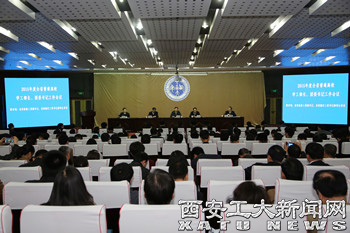 (本网讯)4月1日,2015年度全省高校学工部长、团委书记工作会议在我校未央校区报告厅召开。省委高教工委副书记、省高教纪工委书记郝利生,校党委书记赛云秀,校党委副书记丁养斌,省委高教工委学工部部长田民正,省高教团工委书记郭强出席了会议。
