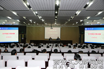 (本网讯)4月1日,我校召开2015年度工作会议,进一步落实党委会上通过的《西安工业大学2015年党政工作要点》,部署学校2015年度主要工作。校党委书记赛云秀主持会议并做重要讲话,校长苗润才部署2015年度行政主要工作。校党委副书记丁养斌、于孟晨,纪委书记许尚年,副校长张君安、刘建勋、刘卫国、雷亚萍、陈桦,总会计师段小存出席会议,全校副处级以上干部、正高职人员、各民主党派负责人参加了会议。