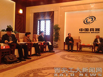 (本网讯)4月10日,校党委书记赛云秀、校长苗润才、副校长雷亚萍一行赴京与中国兵器工业集团公司董事长、党组书记尹家绪,副总经理石岩等进行了座谈。
