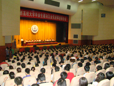 (本网讯)为了隆重庆祝建党90周年,充分展示陕西高校大学毕业生的时代风采,引导在校大学生刻苦学习、立志成才,激励其毕业后到祖国和人民最需要的地方去建功立业、奉献青春,陕西省委教育工委、省教育厅从6月20日至21日分别在西安邮电学院、长安大学和西安科技大学举办了三场“陕西高校大学毕业生建功立业先进事迹报告会”。
