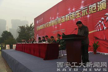 全省高校应急疏散逃生示范演练在西安工业大学举行(西部网2013 11 11)