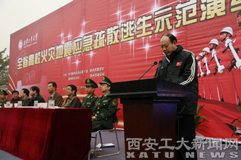 最后,董小龙做了总结讲话。他指出,本次演练是成功的,达到了预期的目的,西安工业大学在消防安全方面的成功经验,值得兄弟院校借鉴。他向与会高校提出了几点要求:要进一步提高对消防安全、火灾防范等工作重要性、必要性的认识;要加强领导,落实责任,完善机制;要加强学校保卫队伍的培训建设;要加强监督检查。