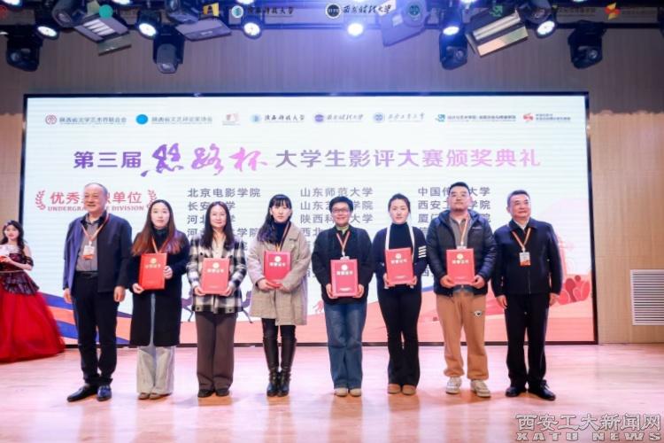 (本网讯)12月9日,由陕西省文学艺术界联合会、西安工业大学、陕西科技大学、西安财经大学联合主办,我校“西部电影艺术与文化品牌发展研究中心”等多家陕西省委宣传部电影理论及创作研究基地共同承办的第三届丝路杯全国大学生影评大赛圆满落幕。在本次赛事中,我校荣获优秀组织奖一项,文学院学子获研究生组三等奖一项、优秀奖三项。我校副校长刘发林受邀出席颁奖典礼并致辞。