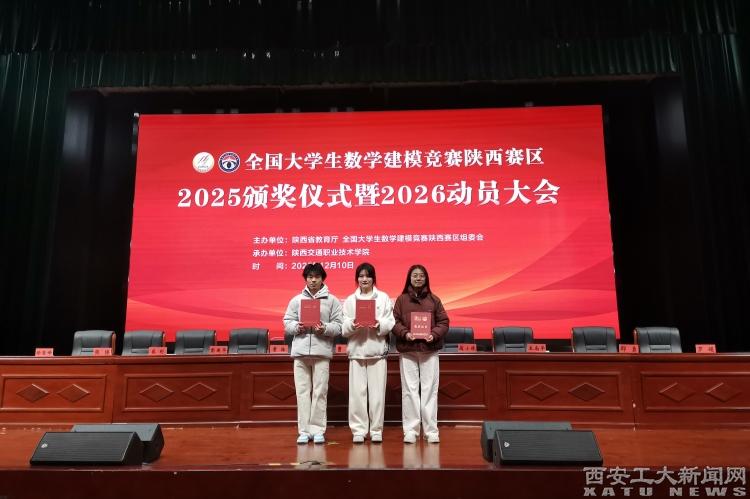 (本网讯)近日,全国大学生数学建模竞赛陕西赛区2025颁奖仪式暨2026动员大会在陕西交通职业技术学院举行。我校荣获国家级二等奖3项(2025年国家级二等奖全国获奖率为1.96%),陕西赛区一等奖16项、二等奖26项,学校被评为陕西赛区“优秀组织单位”,获奖数量再创历史新高。