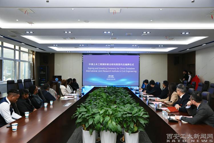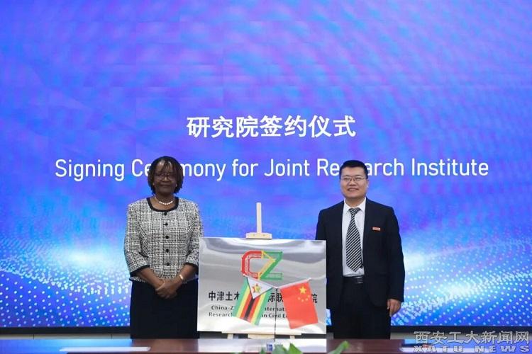 (本网讯)12月19日,西安工业大学与津巴布韦技能考核与发展部合作共建“中津土木工程国际联合研究院”签约暨揭牌仪式在我校举行。津巴布韦共和国驻华大使阿比盖尔·绍尼瓦一行、陕西省人民政府外事办公室副主任黄勇、我校校长姚尧出席仪式。仪式由副校长闫莉主持。