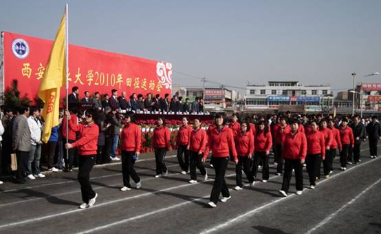 (本网讯)4月23日,西安工业大学2010年田径运动会在未央校区田径场隆重召开,学校党政领导就坐主席台,校党委书记赛云秀致词。