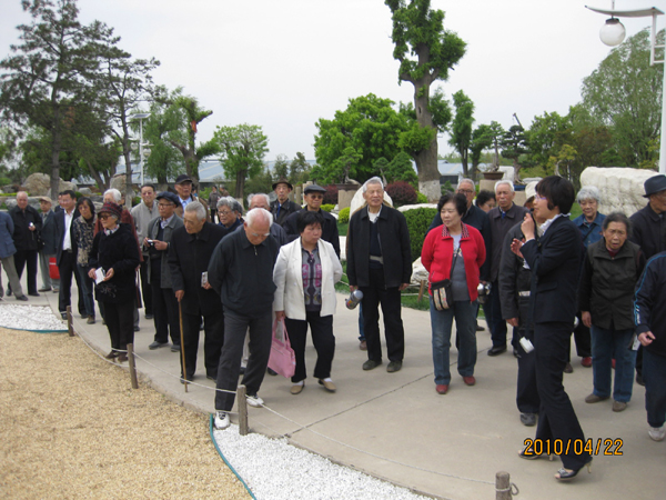 4月25日,组织参观阿姑泉牡丹园和唐苑。阿姑泉牡丹园位于户县城南十公里的终南山处,是近年来人工培育的牡丹园林,占地面积约五平方公里。园内现有牡丹400多个品种,10万余株,九大色系。老同志们看到各式各样盛开的牡丹花,感到进入了仙境,好象就在世外桃源,有种梦幻般的感觉。而中国唐苑坐落于西安东南杜陵塬上。是集历史文化、生态园林、山水景观、休闲旅游为一体的开放式文化公园。老同志们一边观赏唐苑风景,一边赞叹着现代建筑技巧的先进。老同志们对离退休办组织的这次活动非常满意,他们说:离退休办组织我们走出家门,开展这样的活动,既给我们提供了一个了解西安发展变化的机会,又增进了老同志之间的沟通和交流,希望经常组织这样的活动。