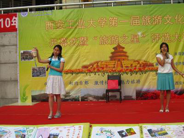 (本网讯)6月1日下午,由西安工业大学团委主办、经济管理学院承办的首届旅游文化节开幕式暨旅游之星评选活动在未央校区举行。本次活动以“传承文明 相约古都 激情校园 魅力旅游”为主题,尽现古城风采,展示西安工大学子朝气。