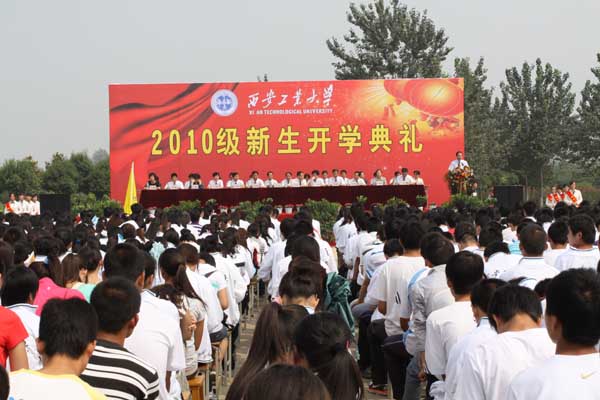 (本网讯)9月3日上午,西安工业大学在未央校区经纬广场举行 2010级新生开学典礼。校党委书记赛云秀、副校长张君安等校领导和各部门、各院系负责人出席典礼,4600余名本科新生和520名研究生参加了此次典礼。