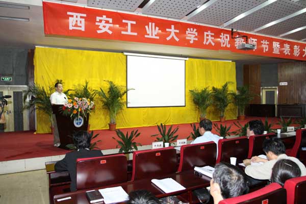 (本网讯)9月9日下午,西安工业大学在未央校区学术报告厅召开庆祝第26个教师节暨表彰大会。校领导赛云秀、张君安、丁养斌、于孟晨、许尚年、刘建勋、陈桦、徐雪芹出席大会。受表彰的集体及个人、全校正高级职称人员、处级干部、新入校教职工及学生代表参加了大会。大会由工会主席徐雪芹主持。