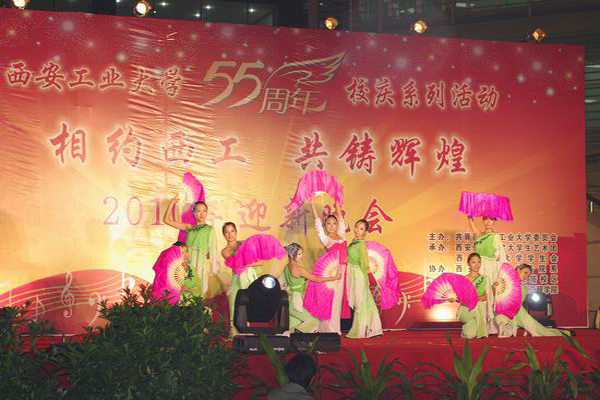 (本网讯)为喜迎建校55周年与2010级新同学,10月17号晚,由校团委主办的西安工业大学55周年校庆系列活动之“相约西工 共铸辉煌”2010年迎新晚会在未央校区隆重举行。校党委书记赛云秀、副校长张君安、校党委副书记丁养斌、校党委副书记于孟晨、副校长陈桦以及党办校办、党委组织部、党委宣传部、教务处、学生处、雁塔校区、北信学院等部门领导,以及各院(系)分党委(党总支)书记、新生辅导员老师与我校5000余名新生一同观看了晚会。