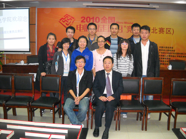 (本网讯)由中国计算机学会主办,中国计算机学会嵌入式系统专业委员会、陕西省计算机学会承办的“2010全国电脑鼠走迷宫竞赛”西北赛区比赛于10月17日在西安邮电学院长安校区举行,来自西北地区18所院校的54支代表队参加了比赛。西安工业大学组织了四只代表队参赛,并邀请曾多次指导学生参加全国性大赛的电信学院秦刚副教授、工业中心祁立军老师作为指导教师。17日上午,电信学院信息与通信工程系主任雷斌副教授带队来到比赛现场,电信学院高嵩副院长亲临助阵。参赛队员不负众望,最终获得了一个一等奖、一个二等奖、两个优秀奖的优异成绩。