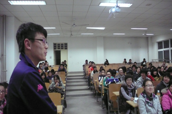 电信学院柳程同学以自己在美国的亲身经历与学生们进行了交流。他说:从考核到准备材料,从使馆签证到订购机票,从踏上征程到机场离别,从中国到美国。这一切就在几个月的时间里发生了,每完成一项任务都小心翼翼但又困难重重,每一份材料都要亲自完成,这就是锻炼自己的开始。美国的经历不仅锻炼了口语、结交了朋友,更多的是人生观和世界观的改变。考研或工作,出国或在国内发展这些对每个人来说很重要,但一切的发展都在于机遇和努力,无论在哪,无论做什么,只要一个人有能力,在哪里都可以大展身手,只要一个人有活力,在哪里都可以充满机遇。