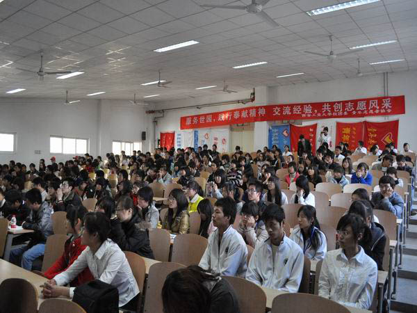 (本网讯)2011西安世园会志愿者报名活动已接近尾声,选拔工作即将拉开序幕。为了交流志愿服务经验,12月2日,由西安工业大学青年志愿者协会主办以“共赢精彩,同享世园”为主题的西安市大学生志愿者交流会在未央校区举行,多名曾参与上海世博的志愿者与在校大学生分享了他们的服务经验。