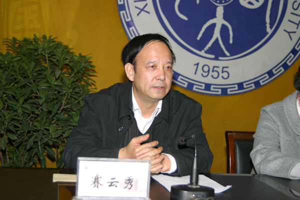西安工业大学党委书记赛云秀同志在讲话中代表校党委对省委的决定表示坚决拥护,对廉振民同志到西安工业大学工作表示热烈欢迎,对省委、省教育工委及上级领导多年来给予学校的指导、支持表示感谢。赛书记简要回顾了学校“十一五”以来取得的发展成果,并相信调整以后的校领导班子将带领全校师生员工把“十二五”规划制定好,落实好,推动学校事业取得更大的发展。他指出,廉振民同志长期在高校工作,具有丰富的教育教学管理经验,熟悉高等教育发展规律。这次省委决定廉振民同志到我校担任校长,这是省委、省政府和省教育工委、教育厅对学校的关心和支持,党委将按照省委的要求,全力支持廉振民同志的工作,团结合作,求真务实,紧密依靠和团结带领广大师生员工,秉承“敦德励学,知行相长”的校训,为把西安工业大学建设成为特色鲜明的高水平教学研究型大学而努力奋斗。