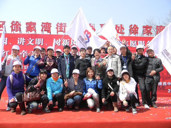 (本网讯)3月26日,由陕西省妇联、陕西省文明办、陕西省红凤工程志愿者协会、西安阳光医院主办,未央区文明办、民政局、卫生局、妇联、徐家湾街道党工委、办事处协办,西安阳光医院、未央区相关社区等联合举办的“迎世园、讲文明、树新风陕西省巾帼志愿服务行动”暨“红凤牵手阳光志愿服务社区”活动启动仪式在未央区徐家湾街道办举行,西安工业大学 30余名师生应邀参加了此次活动。