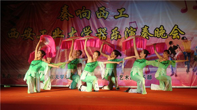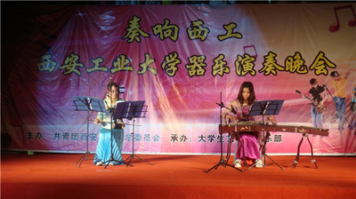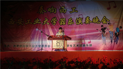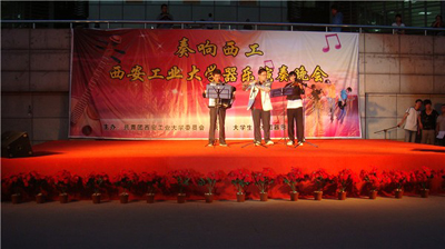 (本网讯)5月4日晚,由校团委主办,大学生艺术团器乐部承办的“奏响西工”西安工业大学器乐演奏晚会在图书馆前举行。