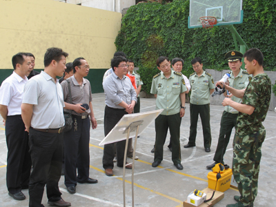 返程途中,考察组一行来到武警消防商洛支队参观,并观看了部队官兵的消防演练。于副书记代表考察组感谢校友武警消防商洛支队政委王强的邀请,向他赠送了学校画册、专题片,对武警消防商洛支队在抗洪救灾中发挥的作用表示钦佩,并对王强校友时刻关心母校的发展表示感谢,也诚挚邀请部队官兵到西安工大做客。