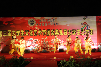 (本网讯)5月29日晚,由共青团西安工业大学北方信息工程学院委员会和大学生艺术团承办的第三届大学生文化艺术节颁奖典礼暨大学生艺术团文艺汇演在北信学院田径场举行。北信学院党委书记简林根、党委副书记杨灏、财务总监王培华、各职能处室领导和各系学生代表观看了文艺汇演。