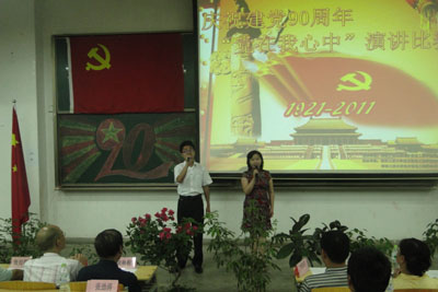 (本网讯)6月15日晚,由西安工业大学北方信息工程学院党委主办、院长办公室和学生处承办的庆祝建党九十周年“党在我心中”演讲比赛,在8F-J1教室举行。西安工大北信学院党委书记简林根、党委副书记杨灏以及各处室领导观看了比赛。