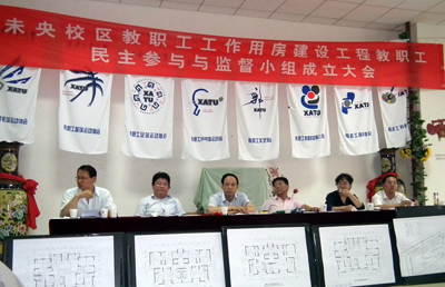 (本网讯)为保证教职工未央校区工作用房工程建设各项工作的顺利开展,保障教职工的知情权,强化教职工参与民主管理,在学校的倡导与支持下,西安工业大学工会建立了教职工参与监督的相关制度,并成立了教职工未央校区工作用房建设工程教职工民主参与监督小组。6月22日下午,在未央校区图书馆教职工活动室,召开了参与监督小组成立大会。校工会委员、基层工会主席、教代会代表组组长、房务委员会成员、参与监督小组成员参加了会议,并邀请了基层党委书记、总支书记、国资处、基建处、审计处、财务处、党校办、宣传部等单位领导参加。校党委书记赛云秀、校长廉振民、校党委副书记于孟晨、副校长陈桦出席了大会。校工会主席徐雪芹主持大会。