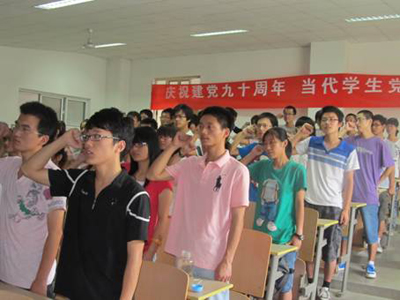 为展示新党员对党的无限忠诚,坚定其为革命事业奋斗终身的决心,抒发其为党90华诞深深的祝福,机电学院组织数百名新入党党员面向党旗庄严宣誓。