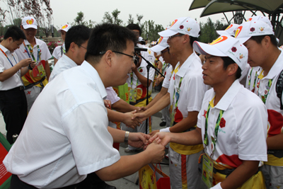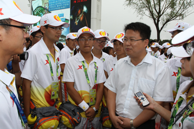 (本网讯)8月18日下午,第九批志愿者慰问仪式在西安世园会得宝门举行。团省委书记李豫琦,副书记张小平,团市委相关领导一行人来到西安世园会慰问西安工业大学和西安石油大学的志愿者。