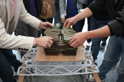 比赛按照模型的宏观造型、微观造型、单位荷重的加载量进行初评,入围的前10名模型进行最后答辩。在各参赛组负责人介绍自己模型的设计特点后,评委针对参赛作品的造型特点、杆件制作、节点处理方法等方面进行了提问,随后进入到紧张而扣人心弦的模型加载环节,有些模型不幸失败,更多的则经受住了考验。