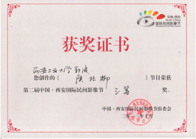 (本网讯)西安工业大学退休教师郭波教授拍摄的电视散文《陕北柳》荣获第二届西安国际民间艺术节三等奖。