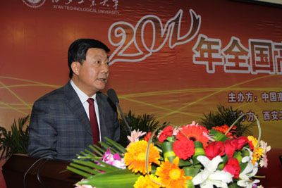 西安工业大学党委书记赛云秀同志致欢迎辞:他说:“由我校承办的2011年全国高等教育学会学生工作研究分会年会在这里隆重召开,这是年会举办5年来首次在西北地区召开,西安工业大学对承办此次年会感到非常荣幸”。赛书记对出席本次会议的各位领导、专家和代表表示诚挚的欢迎,在简单介绍了我校的概况后赛书记表示,本次年会在我校召开,为我校与各兄弟院校的交流与合作架起了一座友谊的桥梁,我们将以此为契机认真学习兄弟院校学生工作的宝贵经验和好的做法,更好地促进我校学生工作的创新发展,进一步提升大学生思想政治教育水平,提高人才培养质量。