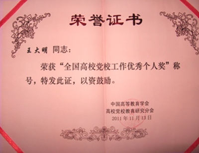 会议上首先传达了中国高等教育学会党校教育研究分会第二次全体会员大会会议精神,同时宣布了表彰决定:对全国34个单位授予“全国高校党校工作贡献奖”,110名同志授予“全国高校党校工作优秀个人奖”,其中王大明同志代表我校党校工作获得了优秀个人奖的表彰,为我校争得了荣誉。