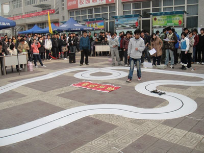 (本网讯)11月25日中午,由西安工业大学校团委主办,电子信息工程学院分团委承办的“第四届循迹车知识普及与制作大赛”在未央校区餐饮大厦门前举行。