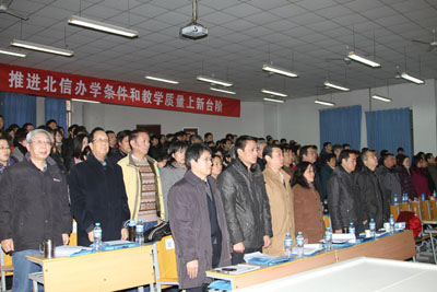 (本网讯)12月13日,西安工业大学北方信息工程学院第三届教育科学研讨会暨教学工作会议在北信学院召开。西安工业大学校长廉振民,西安工业大学副校长、西安工业大学北方信息工程学院董事长张君安,北信学院党委书记简林根,党委副书记杨灏,副院长李建安,副院长薛虹,财务总监王培华出席了会议。会议由杨灏主持。会议在庄严的国歌声中拉开了序幕。