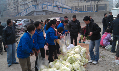 为建和谐校园,营造节日气氛。值此2012年元旦来临之际,后勤集团利用积累资金,以“农校对接”为平台,与高陵县农业局合作,购买了3000份冬季本地蔬菜,以“爱心菜”的形式,在全校范围内免费向在职职工和离退休职工发放。