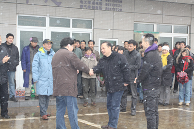 在后勤集团动力中心,于副书记与值班的职工们亲切交谈,嘘寒问暖,代表学校领导向大家拜年。