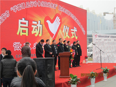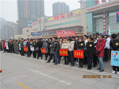 (本网讯)3月5日是全国第49个“学雷锋纪念日”。2日上午,由西安市文明办、共青团西安市委、共青团未央区委联合举办的西安市“学雷锋见行动争当文明使者”和未央区青年志愿者服务活动的启动仪式在西安大明宫建材家居广场举行,未央区教育、卫生、交通、街道办等系统的志愿者代表共计400余人参加了仪式,西安工业大学学生会40余名学生代表参加了此次活动。