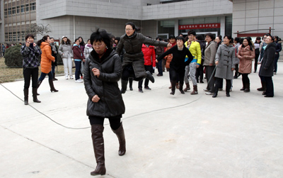 表彰大会结束后,进行了“三八节”趣味活动,400余名女教职工参加了跳绳、抬花轿等趣味比赛。校园里充满了欢声笑语,洋溢着节日的喜悦,展现出一片和谐的氛围。