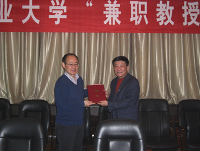 随后,廉振民校长为张丰收教授颁发了兼职教授聘书。张丰收教授表示,很高兴受聘西安工业大学兼职教授,作为西安工业大学的一员,会尽自己所能为西安工业大学离子束生物工程与生物多样性研究中心的发展贡献力量。