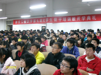 (本网讯)3月21日,西安工业大学第九期大学生骨干培训班开学典礼在未央校区教A217举行。校团委副书记张英、团委翟超、赵伟奇与第九期大学生骨干班全体学员参加活动。活动由团委宣传部部长赵伟奇主持。