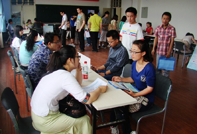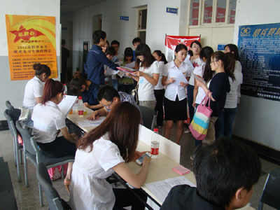 与其它招聘会不同的是,本次专场招聘会不仅为我校学生带来了就业岗位,而且还提供了不少见习岗位。招聘会上除了应届毕业生外,也吸引了一些在校生前来参加应聘。整个招聘现场气氛热烈,前来应聘的学生挤满了企业招聘展台。用人单位招聘人员热情地向同学们介绍企业及招聘岗位的相关情况,解答同学们提出的问题。很多同学针对自身条件和岗位需求现场咨询并递交简历。在一上午的招聘活动中,用人单位总共收到了近千份同学的简历,招聘单位对本次招聘感到非常满意。