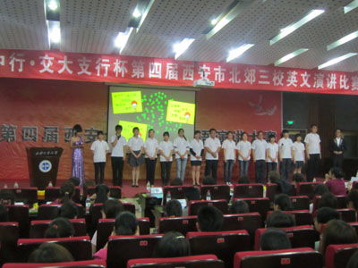 第四届西安北郊三校英语演讲大赛决赛圆满落幕。这次大赛,不仅为北郊三校英语爱好者创建了一个展示自我的绚丽舞台,促进了英语教学与学习方面的交流,而且也增进了北郊三校同学间的学术交流和友谊。