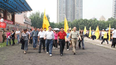 运动会的最后一个项目是校园健步行,在工会副主席朱晋中的一声令下,校领导率先带领近千名教职工,开始了校园健步行。