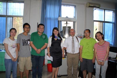在会谈中,路金龙处长首先向代表团各位的莅临表示欢迎,并对我校的发展和现状做了详细介绍。坚增运副院长介绍了材料与化工学院的学科建设和研究方向。喀山国立技术研究大学代表亚历山大副教授介绍了学校相关情况和校际间教师、学生交流与合作等事宜。路金龙处长、坚增运副院长代表学校向俄罗斯客人赠送了礼品并合影留念。随后代表团一行参观了材化学院实验室。