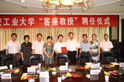 (本网讯)2012年7月6日上午,西安工业大学聘任国家杰出青年科学基金获得者、西北工业大学博士生导师、我校校友刘峰教授为客座教授仪式在金花校区举行。副校长刘建勋、雷亚萍出席聘任仪式,人事处、科技处,材化学院领导以及部分师生代表参加。聘任仪式由人事处处长张弘主持。