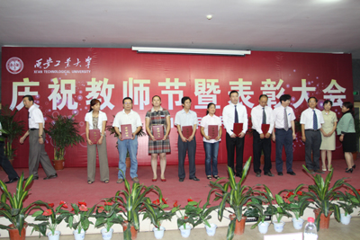 (本网讯)西安工业大学2012年庆祝教师节暨表彰大会于9月6日下午在未央校区图书馆报告厅举行。全体校领导和各单位负责人以及受上级与学校表彰的先进个人、教师代表、学生代表、新入校人员400余人参加了大会,大会由校党委副书记于孟晨主持。