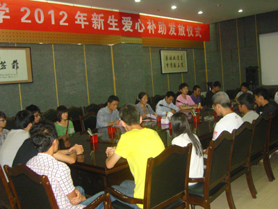 (本网讯)9月18日中午,西安工业大学在未央校区图书馆第一会议室举行西安工业大学2012年爱心补助发放仪式暨学生座谈会,学生处处长任慧英、学生处资助中心相关教师及受助的22名学生参加了发放仪式,仪式由学生处副处长姬洪波主持。