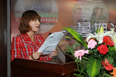 颁奖典礼结束后,赴陕北实践队、绿光实践队的代表做了精彩的团队活动展示。赴陕北实践队讲述了赴延安、榆林学习延安精神、感受榆林经济大发展带来的内心震撼;绿光实践队通过开展“环保送爱心”活动感受到理论与实践的差距,并决心要努力学习;自主开展实践的何伟华同学谈了参加实践的收获和感悟;情景剧《在那开满鲜花的地方》通过几个场景向大家讲述了我校大学生在偏远山区支教时发生的感人故事。同学们从不同的侧面和视角向大家展现了在这个暑期里的收获与感动。