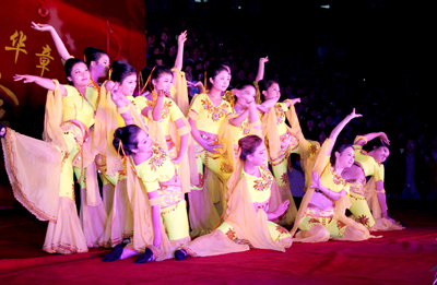 舞蹈《狼图腾》,在喜与悲的情感中用舞蹈展示了极强的生命力,用最坚强的舞步书写着生命的传奇;最后,晚会在大合唱《中国,中国,鲜红的太阳永不落》中圆满结束,到场的领导嘉宾上台与演员合影留念。