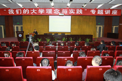张副校长从大学的历史演变、现代大学理念、“高教30条”概述、西安工业大学的大学理念、我们的实践、我们倡导的刻苦学习境界等六个方面,结合学校实际,对现代大学文化做了精彩的讲授。